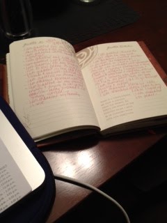 "It's this journal that you keep by your bed. Before you fall asleep, you write in it. No matter how bad your day seems, you have to be thankful for something. That's what you write down," I said, squaring her eyes directly for moments at a time, occasionally lightening the delivery with sips of coffee, and glances toward an imaginary spot nestled deep inside the tiles of the floor.